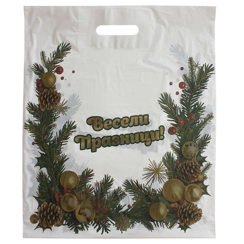 Торба 40х47 + 3 дънна фалта Весели Празници опаковка 50 бр.